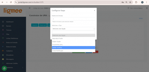 Selecione o espaço de nomes